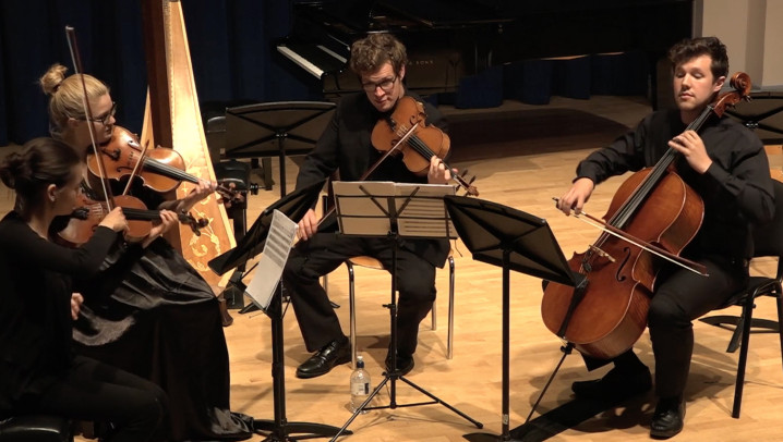 A video recording of Wilhelm Grosz's Fairy Tales Op. 39, a cantata for soprano, string quartet, flute and harp.