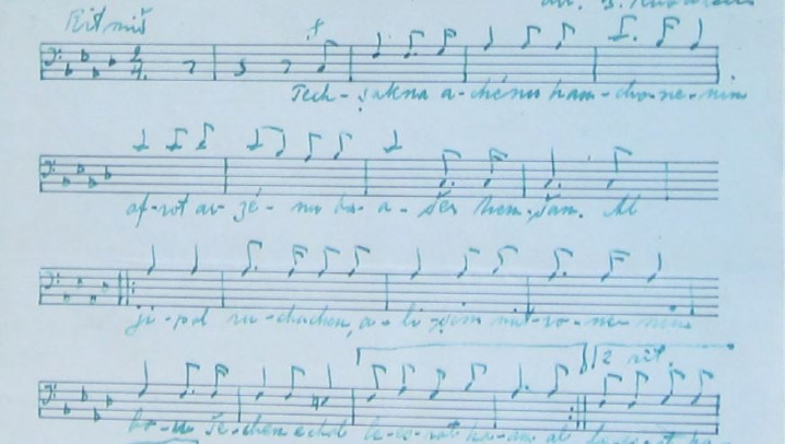 Manuscript of Samuel Rubinstein's arrangement of Birkat am (AKA Tehezakna) for the Jewish Choir Association in Helsinki.