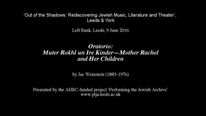 Recording of the performance of Jac Weinstein's tableau Mother Rachel and her children in Leeds, 2016