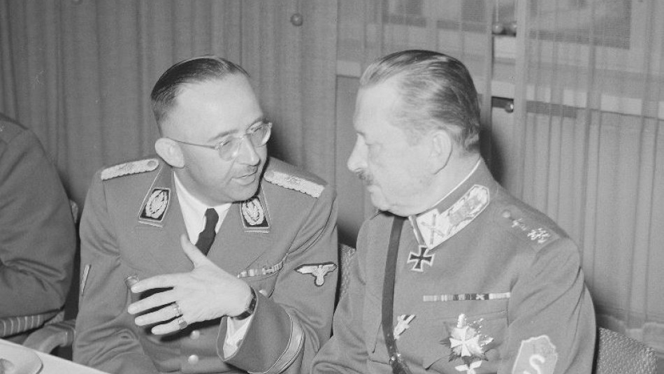 Image shows Heinrich Himmler with Marshal Mannerheim in 1942 during Himmler's visit to Finland.