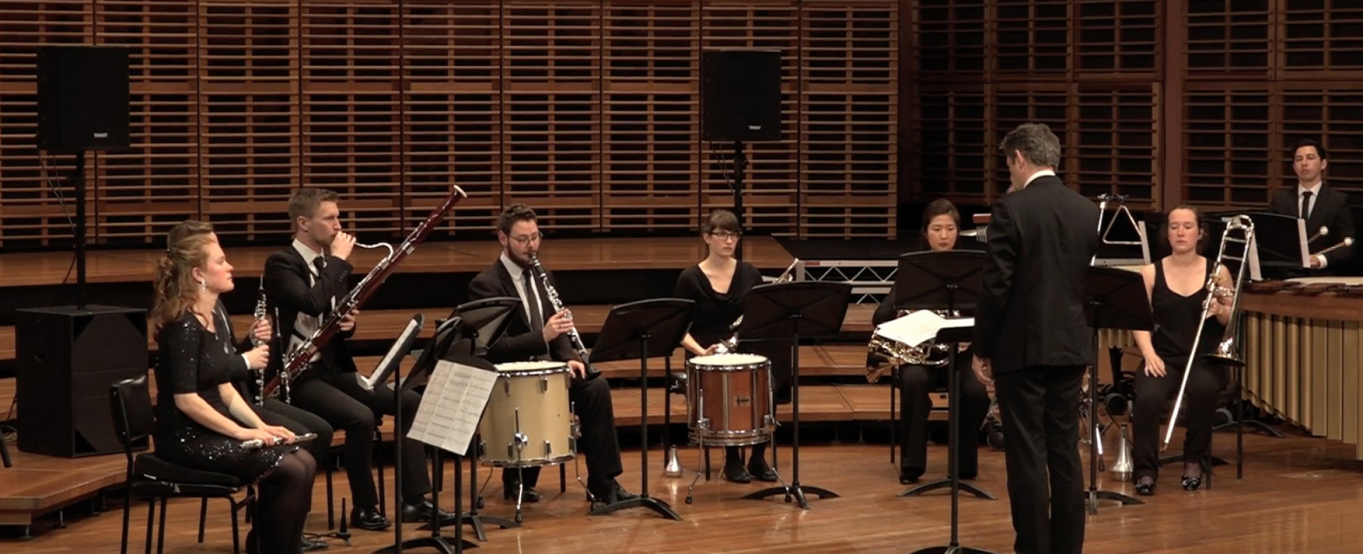 In 2016 I discussed the integration of new compositional works in the Out of the Shadows Sydney festival with the Head of Composition and Music Technology at the Sydney Conservatorium of Music, Dr Damien Ricketson. Together we put out a call for expressions of interest, and received two exciting proposals that I felt could utilise the talents of the wind and percussion instrumentalists from the SSO Fellowship. This world premiere performance of Solomon Frank's composition Peripherals is conducted by Roger Benedict (the SSO Fellowship Artistic Director), with Kim Falconer (flute), Joshua Oates (oboe), David McGregor (clarinet), Christopher Haycroft (bassoon), Alice Yang (horn), Jenna Smith (trumpet), Amanda Tillett (trombone), Samuel Butler (percussion) and the composer, Solomon Frank (recorded sound, backstage behind the instrumentalists).