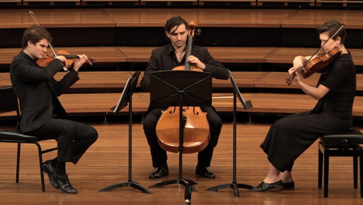 Walter Wurzburger found his voice as a composer in the Tatura detention camp in Victoria, having been deported as an "enemy alien" from Singapore in September 1940 along with all other German nationals. Wurzburger's String Trio for two violins and cello (Op. 2) is his earliest experimental work, demonstrating the composer’s interest in neo-classical forms (Hindemith is a strong influence), jazz, and a distinct love of Bach as evidenced in the third movement. A particular melody in this work returns in later organ settings by the composer, dedicated to his friend (and fellow internee in Tatura), the scientist Uwe Radok. It received its premiere performance in April 2014 in Berlin. This performance features Benjamin Adler (Violin I), Noam Yaffe (Violin II) and Joseph Eisinger (Cello) and lasts approximately 15 minutes 20 seconds.