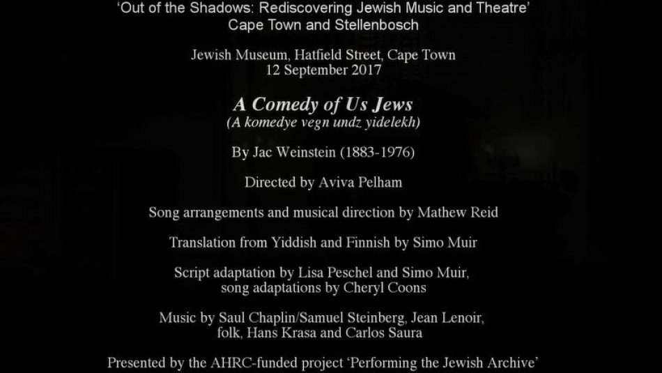 Recording of the performance of Jac Weinstein's A comedy of us Jews, directed by Aviva Pelham, at the 'Out of the Shadows' festival in Cape Town and Stellenbosch, 12 September 2017.