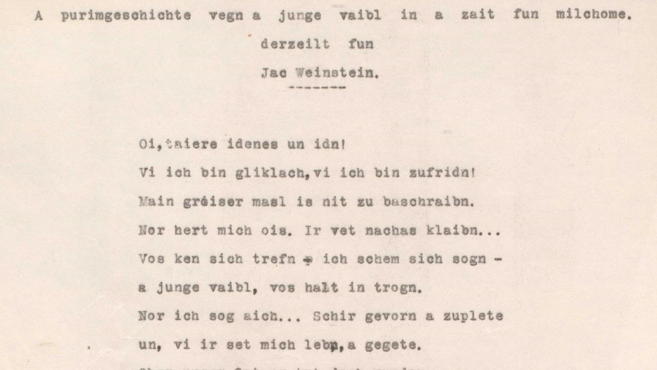 Manuscript of Jac Weinstein's Purim story in Yiddish