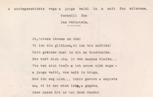 Yiddish-language performance of Jac Weinstein's Purim story from WWII