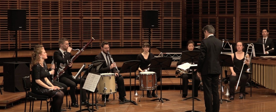 In 2016 I discussed the integration of new compositional works in the Out of the Shadows Sydney festival with the Head of Composition and Music Technology at the Sydney Conservatorium of Music, Dr Damien Ricketson. Together we put out a call for expressions of interest, and received two exciting proposals that I felt could utilise the talents of the wind and percussion instrumentalists from the SSO Fellowship. This world premiere performance of Solomon Frank's composition Peripherals is conducted by Roger Benedict (the SSO Fellowship Artistic Director), with Kim Falconer (flute), Joshua Oates (oboe), David McGregor (clarinet), Christopher Haycroft (bassoon), Alice Yang (horn), Jenna Smith (trumpet), Amanda Tillett (trombone), Samuel Butler (percussion) and the composer, Solomon Frank (recorded sound, backstage behind the instrumentalists).