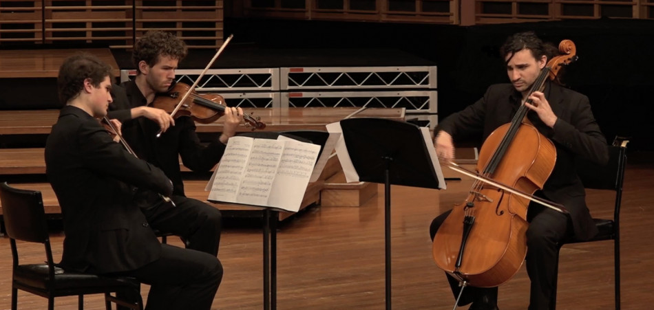 Walter Wurzburger found his voice as a composer in the Tatura detention camp in Victoria, having been deported as an "enemy alien" from Singapore in September 1940 along with all other German nationals. Wurzburger's String Trio for two violins and cello (Op. 2) is his earliest experimental work, demonstrating the composer’s interest in neo-classical forms (Hindemith is a strong influence), jazz, and a distinct love of Bach as evidenced in the third movement. A particular melody in this work returns in later organ settings by the composer, dedicated to his friend (and fellow internee in Tatura), the scientist Uwe Radok. It received its premiere performance in April 2014 in Berlin. This performance features Benjamin Adler (Violin I), Noam Yaffe (Violin II) and Joseph Eisinger (Cello) and lasts approximately 15 minutes 20 seconds.