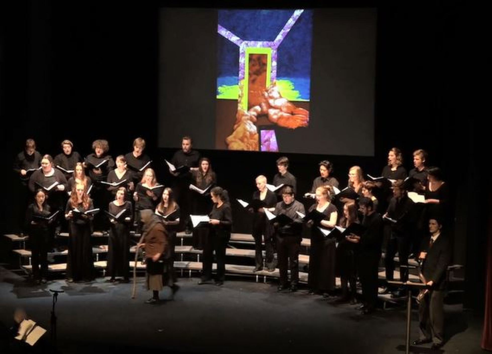Performance of Simon Parmet’s arrangement for Louis Lewandowski's Haleluyo by the University of Wisconsin-Madison Concert Choir conducted by Beverly Taylor as part of Jac Weinstein's tableau Mother Rachel and her children. The tableau was performed at the 'Out of the Shadows' festival in Madison, Wisconsin, 4 April 2016.