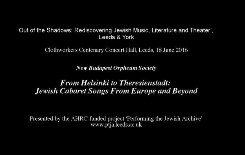 Recording of New Budapest Orpheum Society's concert From Helsinki to Theresienstadt: Jewish cabaret songs from Europe and beyond at the 'Out of the Shadows' festival in Leeds & York, 18 June 2016.