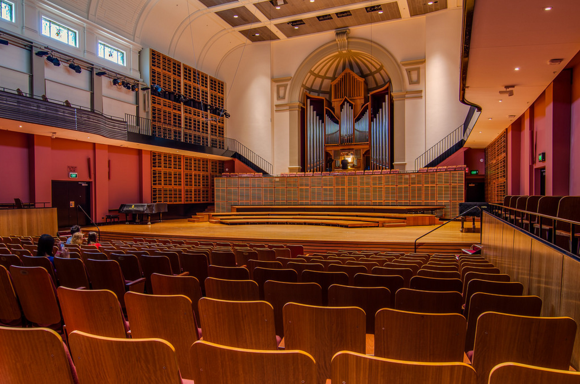 Named after Henri Verbrugghen, the Conservatorium’s founding director, Verbrugghen Hall is a world-class concert hall and the largest venue at the Conservatorium, seating a total of 528 over several sections. With exceptional acoustics designed by Kirkegaard Associates of Chicago, USA, a fixed riser system, Pogson organ and choir gallery, Verbrugghen Hall is most suited to orchestral, chamber and solo music performances with a stage capable of accommodating a full symphony orchestra. The Pogson organ, originally built in 1973, was fully restored in 2001 by the South Island Organ Company of New Zealand when the Conservatorium’s redevelopment was completed.