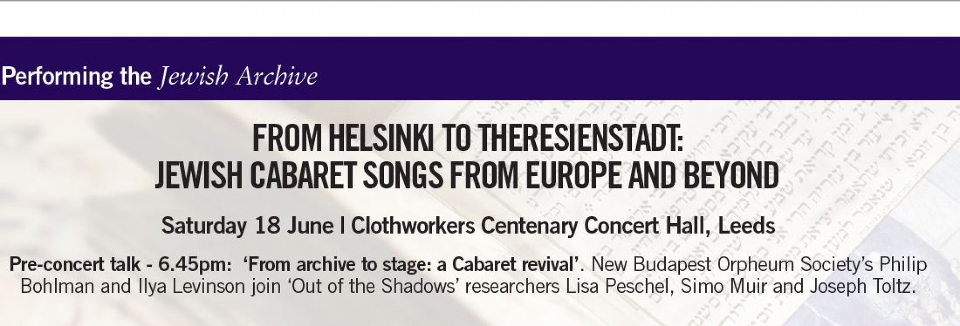 From Helsinki to Theresienstadt: Jewish Cabaret Songs from Europe and Beyond (Leeds and York)