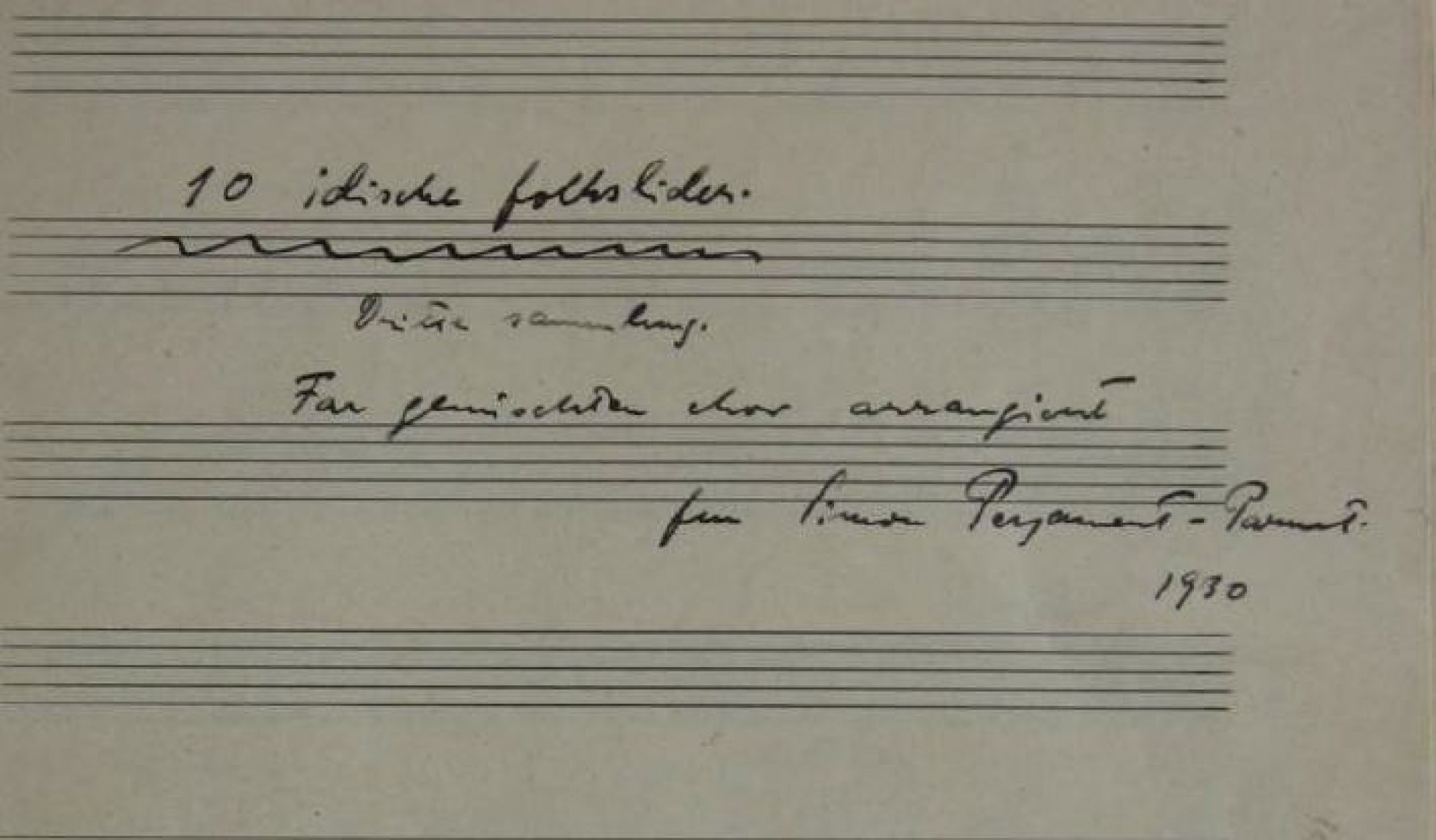Manusript of Simon Pergament's arrangements of Yiddish folksongs for the Jewish Choir Association in Helsinki