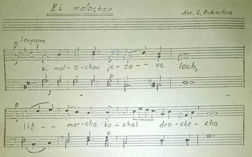 Manuscript copy of Samuel Rubinstein's arrangement of Ki malochov by Salomon Sulzer.