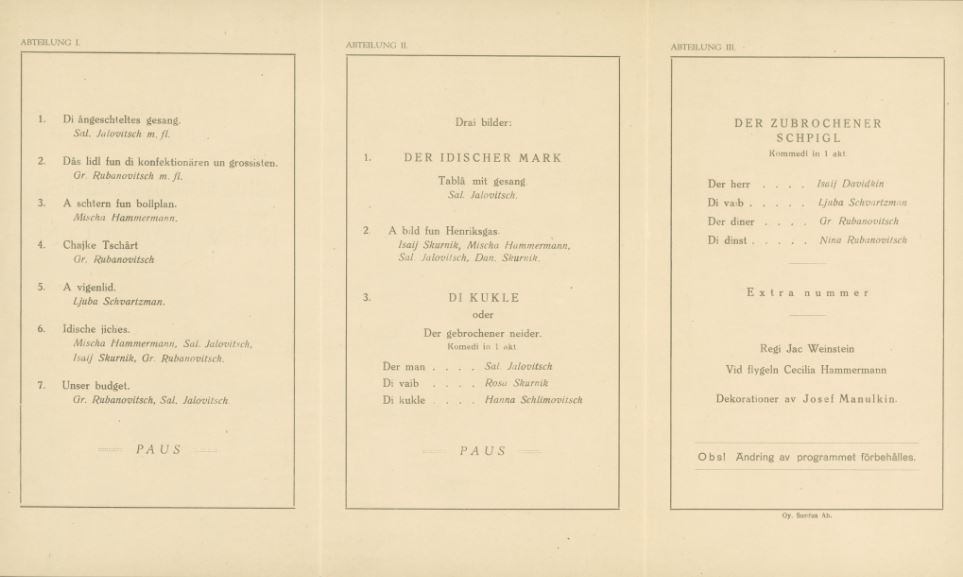 The programme is in the collection of the Finnish Jewish Archives (National Archives of Finland).