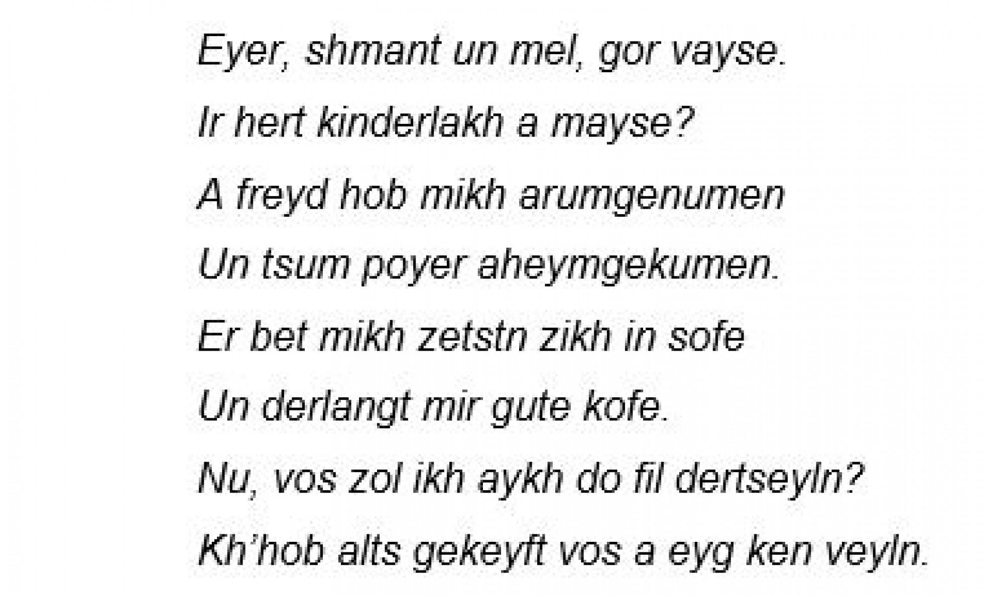 Jac Weinstein's satirical poem in Yiddish about war-time rationing