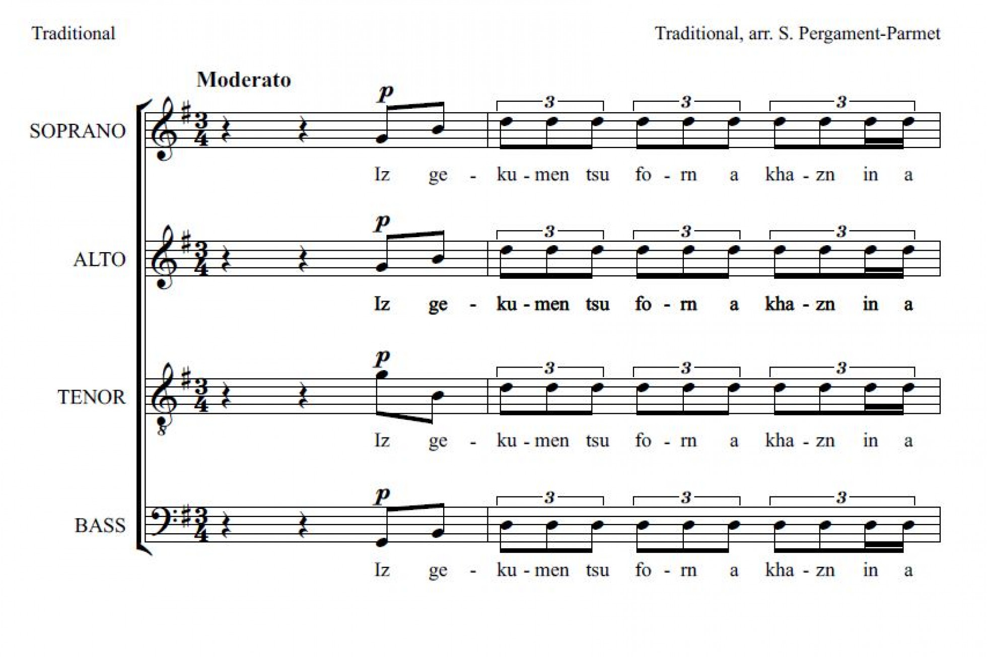 Simon Parmet's choir arrangement for the Yiddish song The cantor