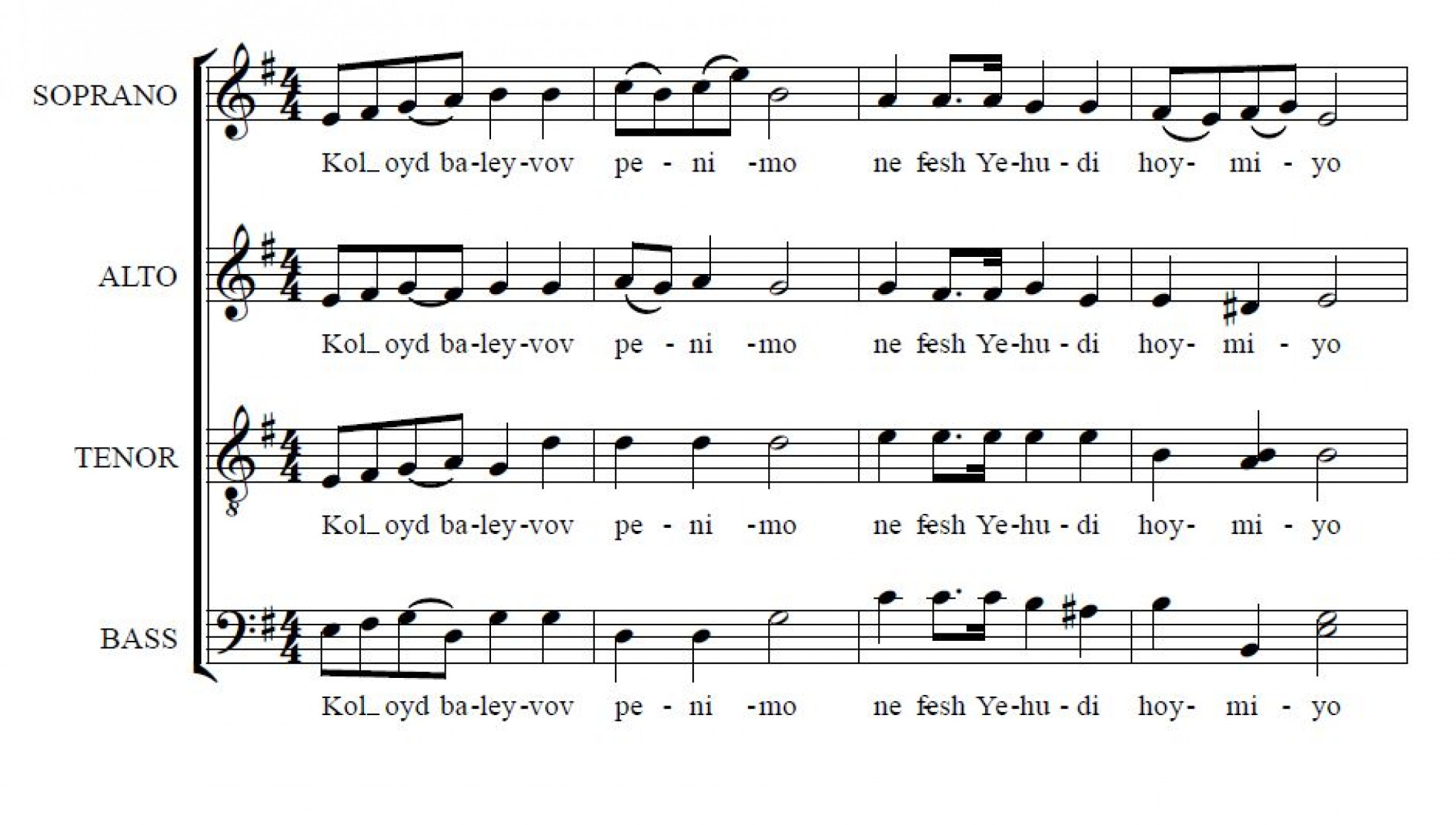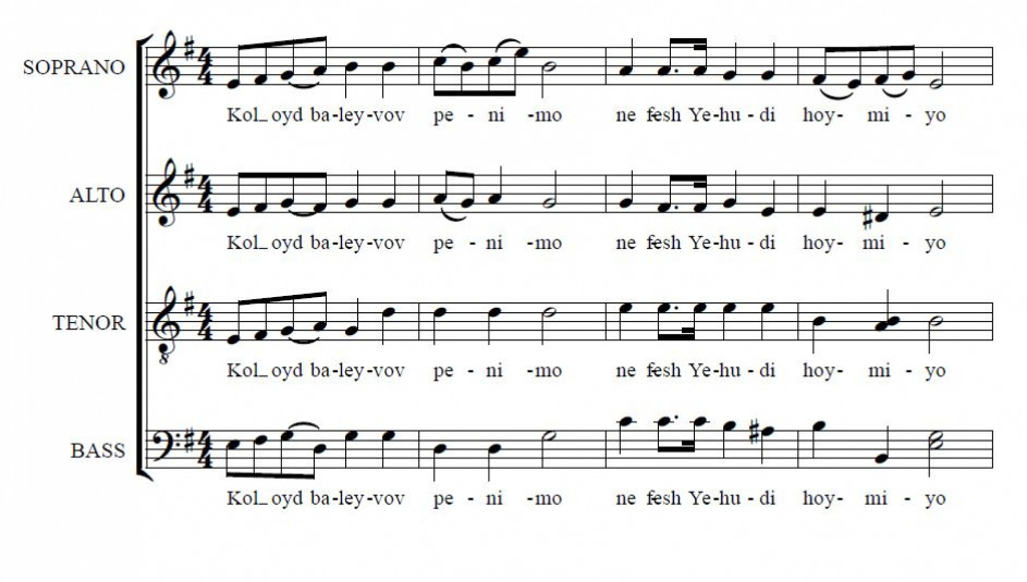 Samuel Rubinstein's arrangement of the Zionist anthem Hatikwah by Inber for the Jewish Choir Association in Helsinki. The lyrics are in Ashkenazi Hebrew pronunciation.