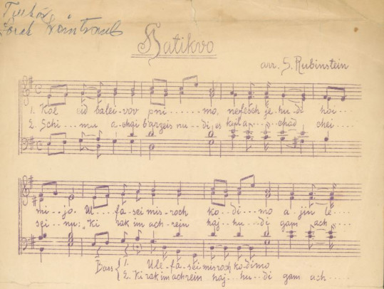 Samuel Rubinstein's arrangement of the Zionist anthem Hatikwah by N.H. Inber.