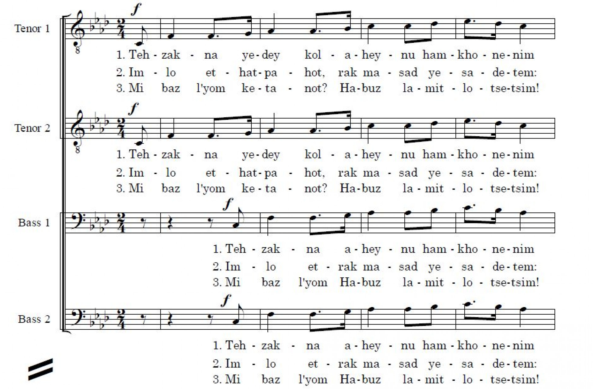 Samuel Rubinstein's arrangement of Labour Zionist anthem Tehezakna by H.N. Bialik.